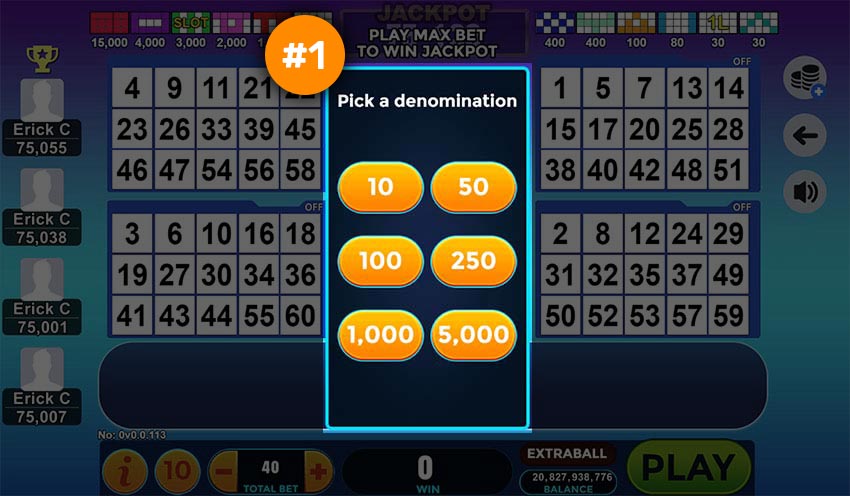 #1. Elija una denominación con la que se sienta cómodo y seleccione Max Bet para aprovechar el jackpot progresivo ascendente que solo paga en Max Bet.